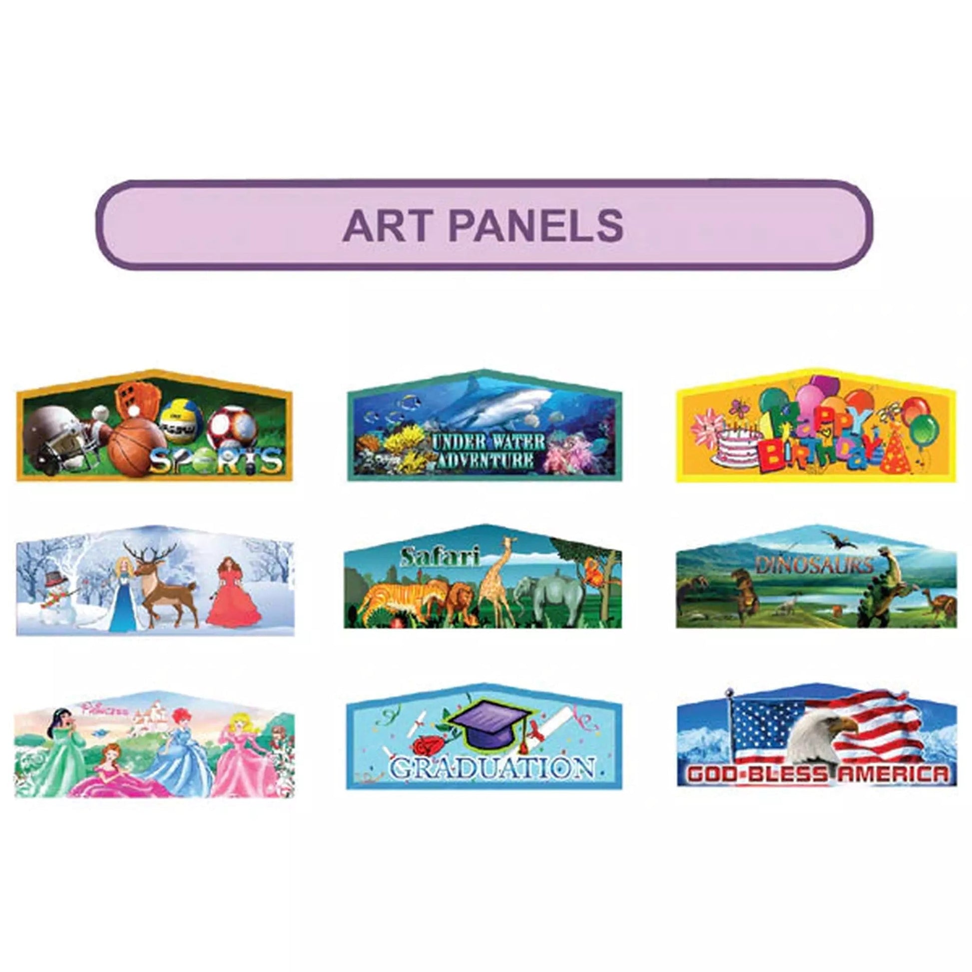 Elevate the visual appeal of your inflatables and create immersive environments for your customers. Whether it's a vibrant birthday bash or an adventurous safari expedition, our diverse range of art panels is designed to enhance the atmosphere and create unforgettable moments. Choose the perfect design to match the theme of your event and let these art panels add an extra layer of excitement to your inflatables!