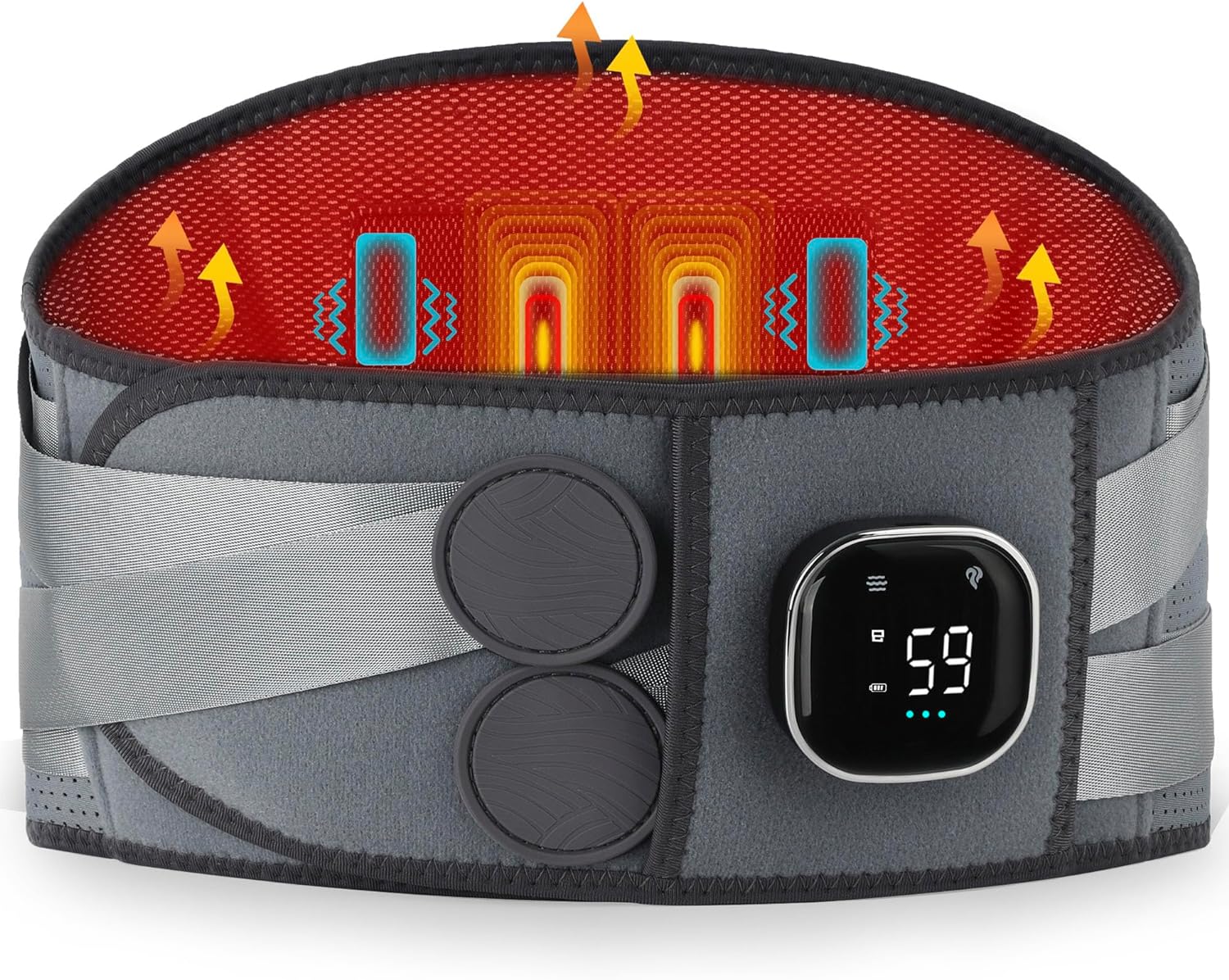 【Up to 60" Length - Adjustable Straps with Extension Band】The back heating pad massager has a separate extension band that stretches up to 60" (TOTAL), which can be adjusted to fit different people's waistlines. The heating pad back massager itself has two-way adjustable straps, and the front Velcro position uses a super-dense adhesive head, which can be firmly affixed to any position of the belt, increasing the wraparound nature of the lower back and not sliding at will.