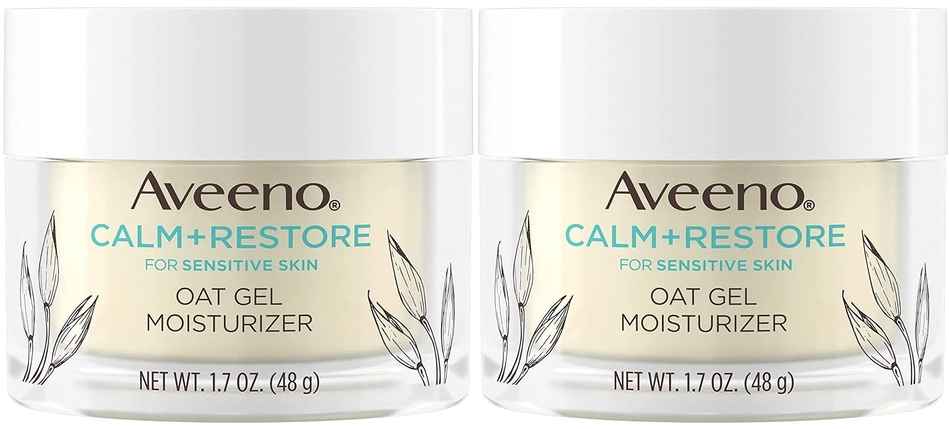 - 1.7-ounce container of Aveeno Calm plus Restore Oat Gel Facial Moisturizer for sensitive and irritated, dry skin to instantly hydrate, soothe and replenish skin's moisture barrier while leaving it resilient