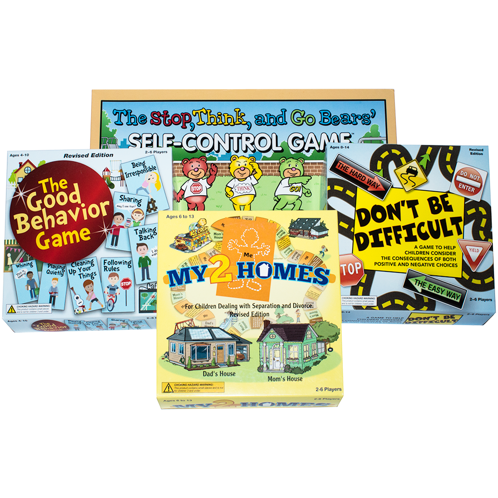 Many counselors like to have a game addressing each common problem of childhood. Each game is then used as part of the treatment protocol to teach specific cognitive/behavioral strategies that can alleviate the most prominent symptoms of each disorder. This collection addresses the problems of shyness, oppositional behavior, ADHD, and adjustment problems as a result of divorce.