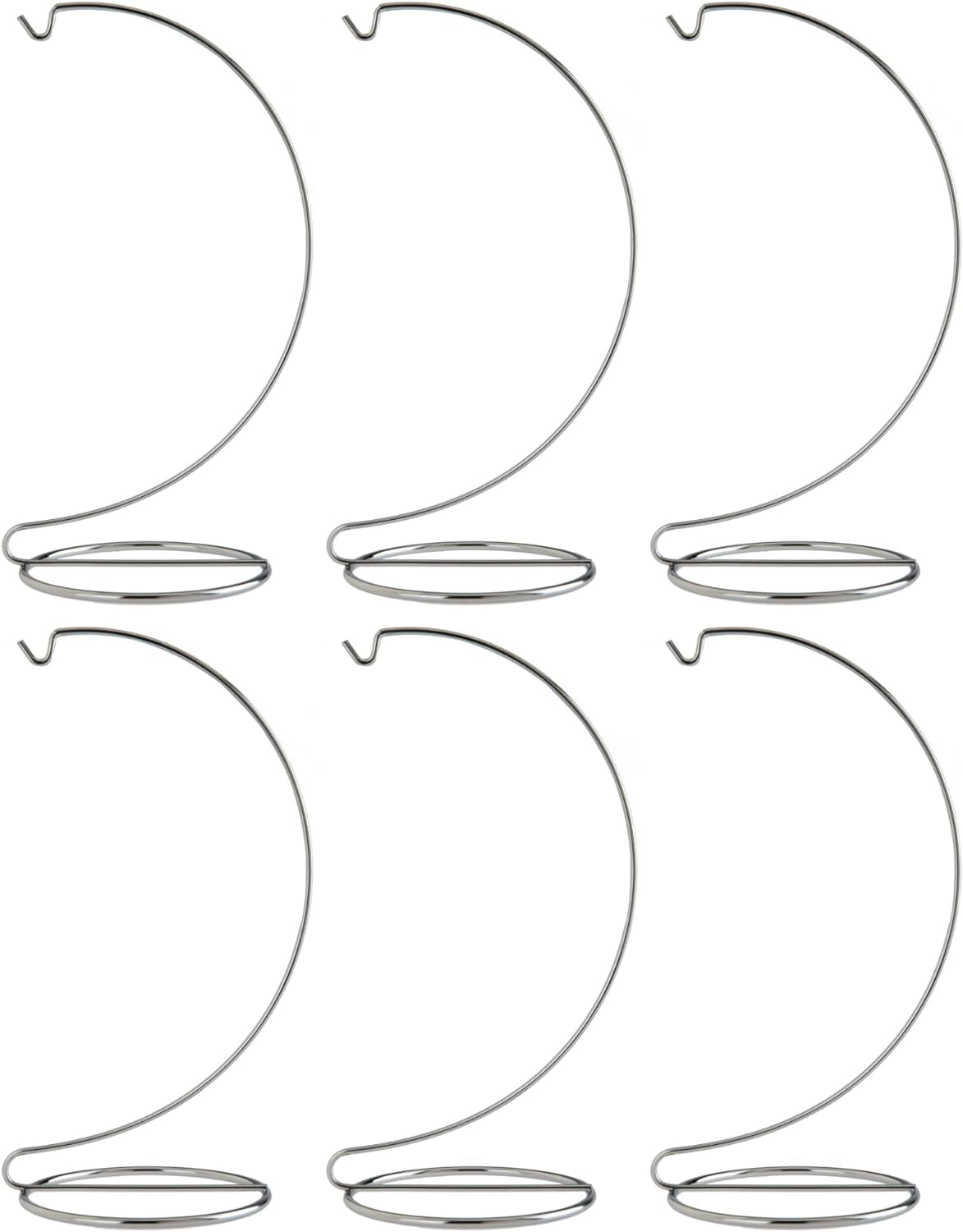 Creative Hobbies 10 Inch Tall Silver Chrome Wire Ornament Hangers Pack of 6 Stands for one low price! Great for displaying ornaments up to 8 inch size (there is 8 inches between hanger loop and stand base). Stands measure 10 inches tall with a 4 inch round diameter base. Sturdy smooth chrome plated wire stands elegantly display your small ornaments. Clean, simple design does not detract from ornaments. Imported.