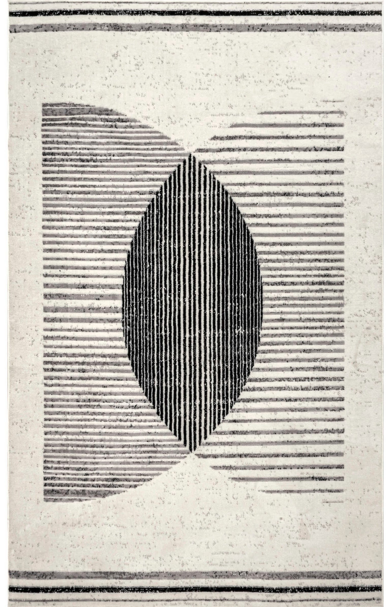 This area rug showcases the chic lifestyle of today, with its tasteful juxtaposition of neutrals and sleek geometric patterns. You'll love the subtle details that will have you taking more than one glance at your new rug. Machine-made of polypropylene, a durable fiber that resists stains and fade.