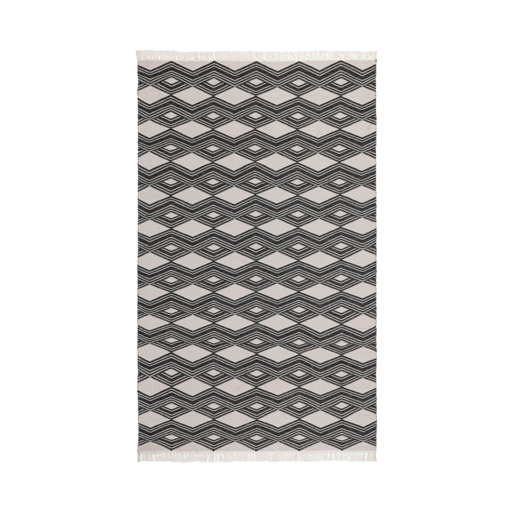 Designed for both indoor and outdoor use, the Darya Rug introduces a woven pattern on an ivory base, with options in either tan or charcoal. The addition of a light fringe enhances its textured visual interest, creating a stunning focal point that elevates the style of your living space. Choose the Darya Rug to bring a touch of modern sophistication and visual intrigue to your home.