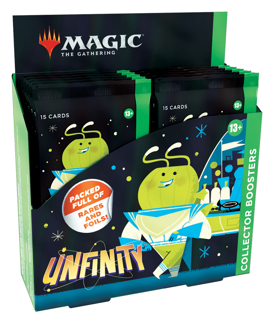 - 1 Unfinity Collector Booster—contains 15 foil MTG cards + 1 foil token