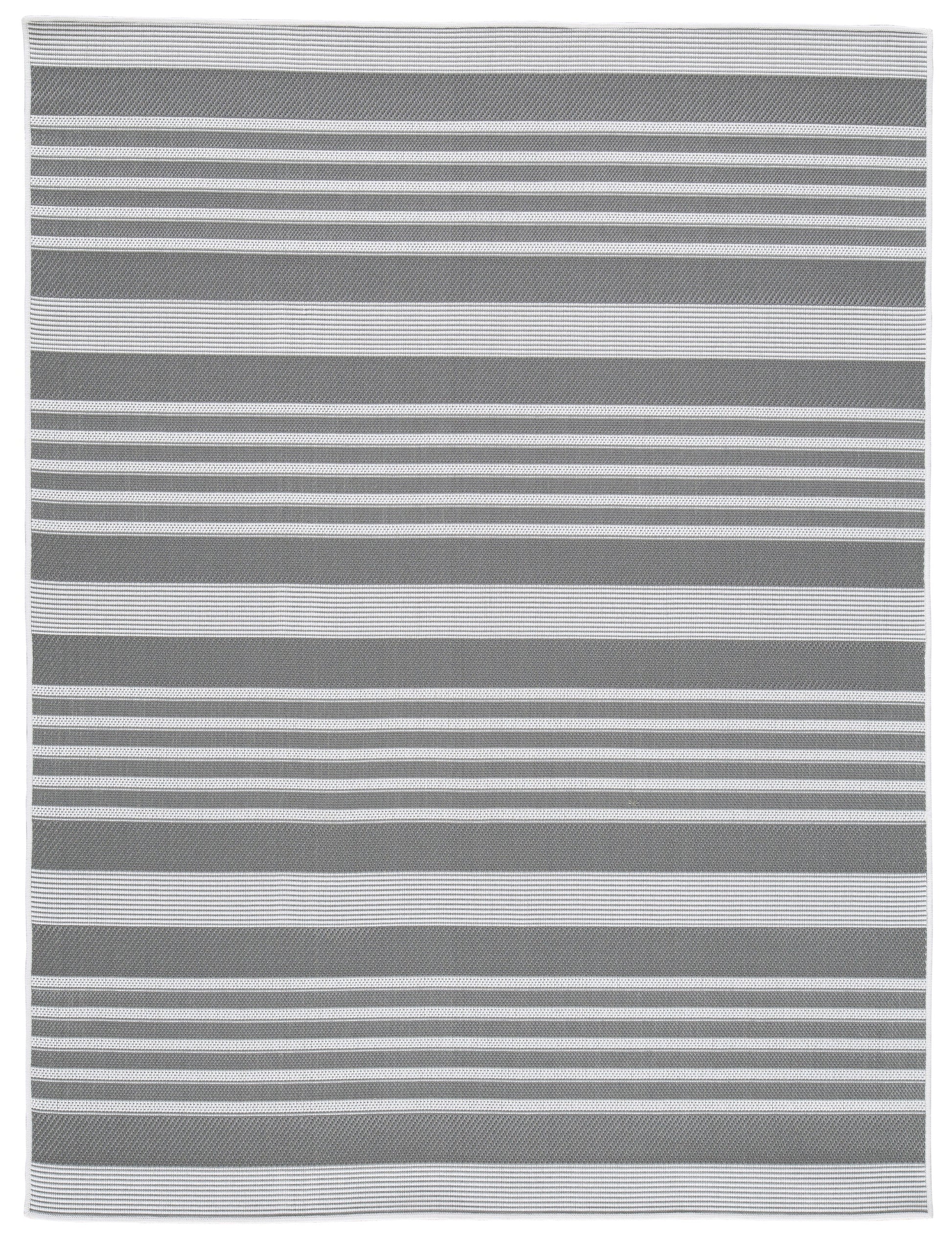 Allow your casually cool aesthetic to seamlessly flow from space to space with this indoor-outdoor rug. Cream and gray compose the striped design, giving this simply stylish rug a universal appeal.
