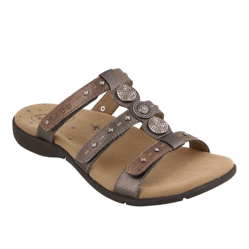The Taos Festive slide features an updated signature look with metal hardware and laser etchings. Featuring the Soft Support™ premium footbed with arch and metatarsal support to give your feet the comfort they need. Easily adjust all 3 straps for a more custom fit.