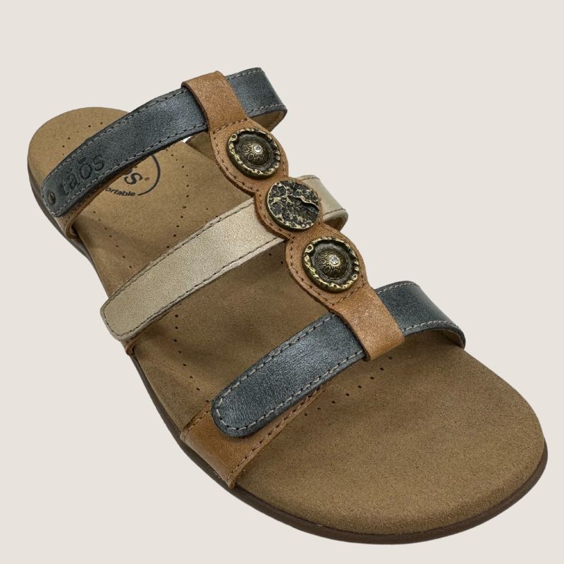 This go anywhere leather sandal is right for just about any occasion and really will become your prize possession. The medallion and jewel hardware adds beauty and personality. Three hook and loop straps deliver the perfect fit, while outstanding comfort comes from Taos Soft Support™. Taos Soft Support™ features their premium footbed with arch and metatarsal support and Cool Recovery Foam®.