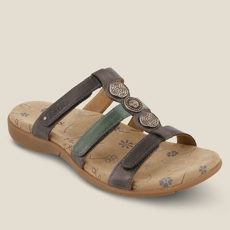 This go anywhere leather sandal is right for just about any occasion and really will become your prize possession. The medallion and jewel hardware adds beauty and personality. Three hook and loop straps deliver the perfect fit, while outstanding comfort comes from Taos Soft Support™. Taos Soft Support™ features their premium footbed with arch and metatarsal support and Cool Recovery Foam®.