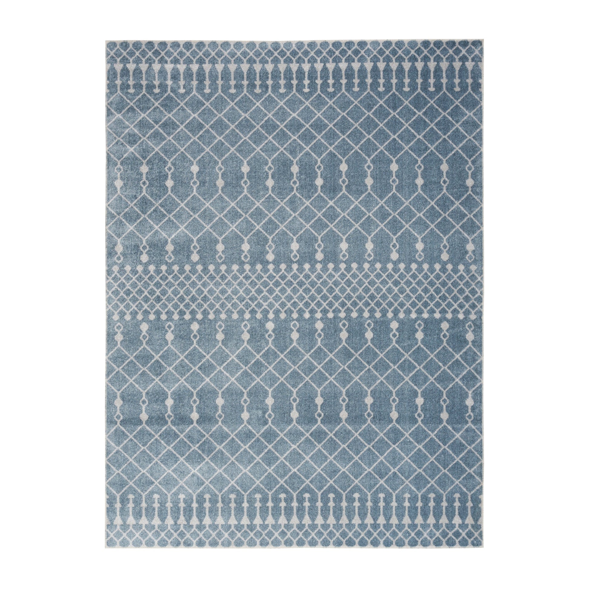Add a sophisticated yet casual element to your home with the Moroccan-inspired Tarraz Collection. Perfect for your active lifestyle and high traffic areas, these floor coverings are machine washable making them the ultimate in easy-care. Power loomed from silky poly fibers; they will feel wonderful under foot. Featuring a surface pattern of modern lines, designer colors and soft weave, these pieces are sure to make an elegant statement in your space. This collection is available in three color options: alabaster, ice blue and gray for an aesthetic that will fit in with your existing color scheme. Enhance your decor with a floor covering from our Tarraz Collection.