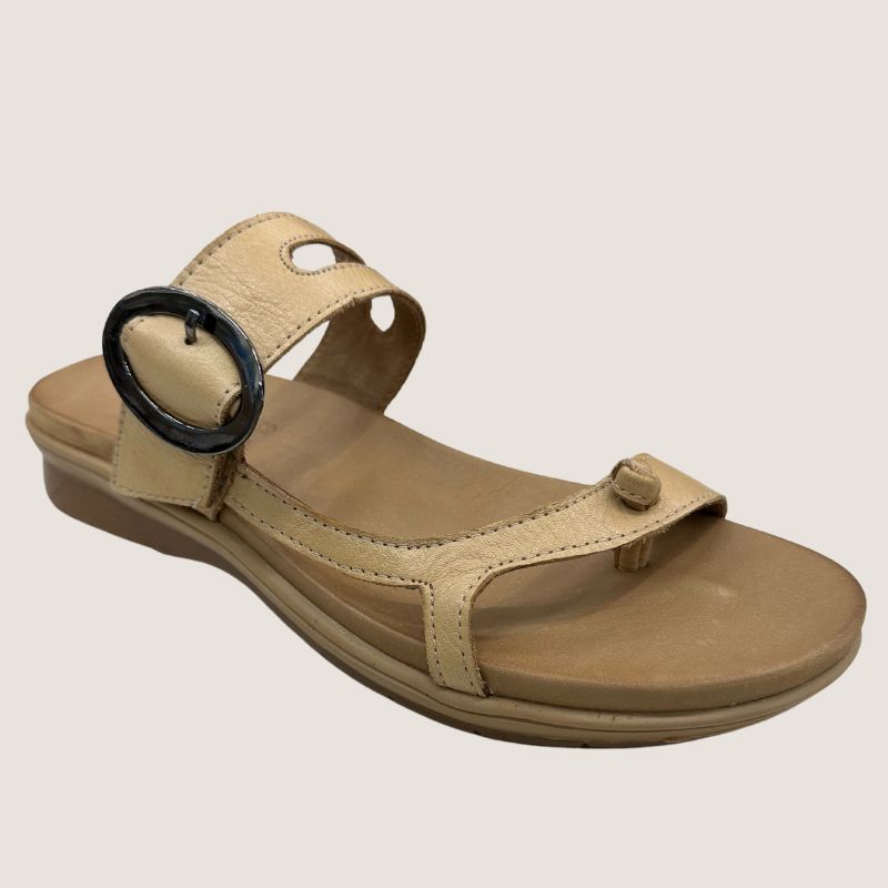 Slip into the Thyme and Co Transmit Slide this summer! With its highly padded insole, slightly platform sole, and soft leather straps, this toe slide will ensure you stay comfortable and cool all summer long.