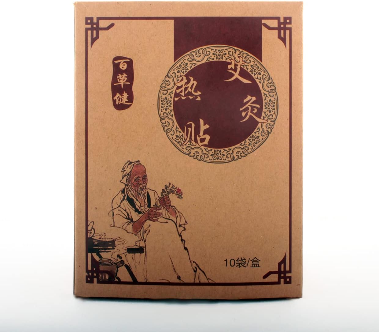 10-pack of self-heating herbal patches; containing natural ingredients such as wormwood, tourmaline and mugwort to provide relief for pain and heating.