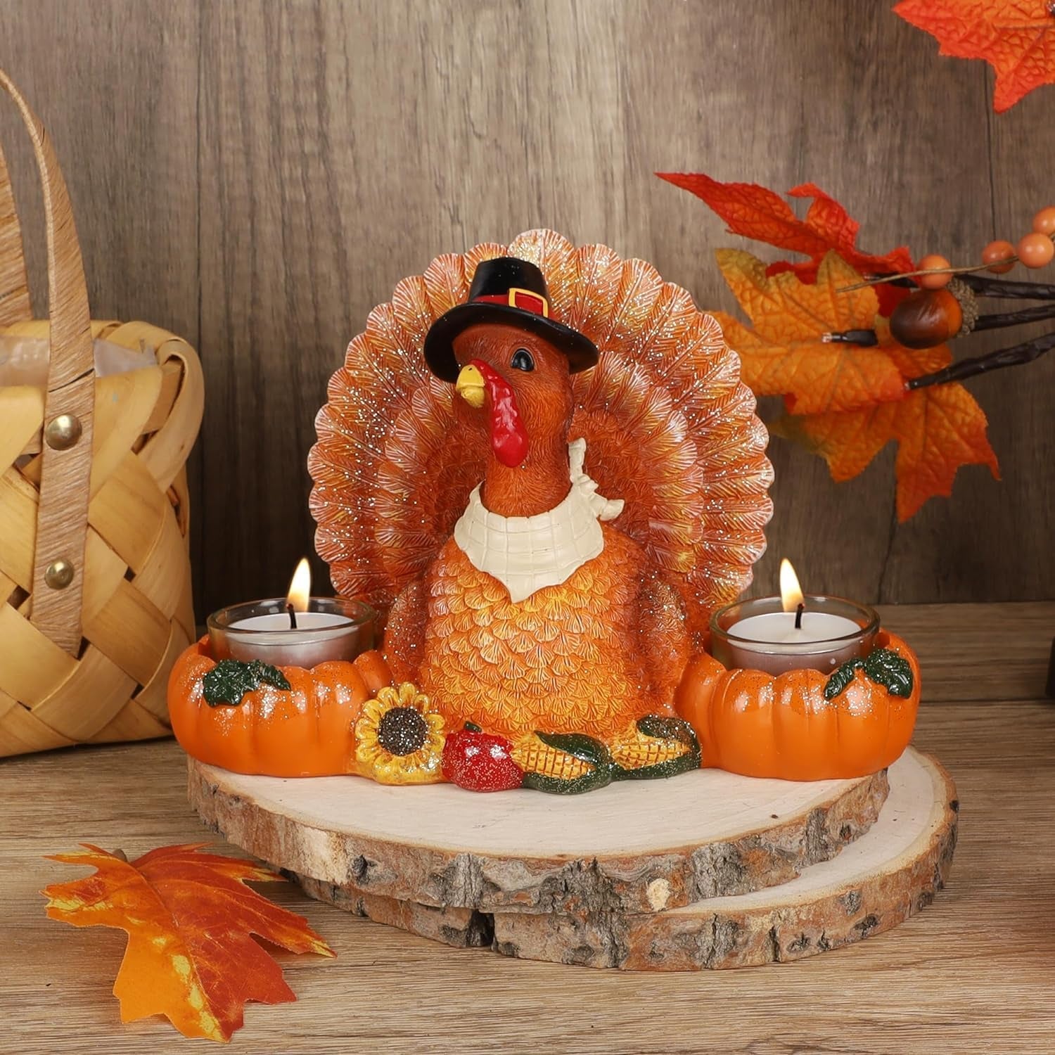- Thanksgiving Candle Display: Our resin turkey is designed with 2 tea light candle holders, you can put in two tealight candles or LED tea light candles (candles are NOT included).