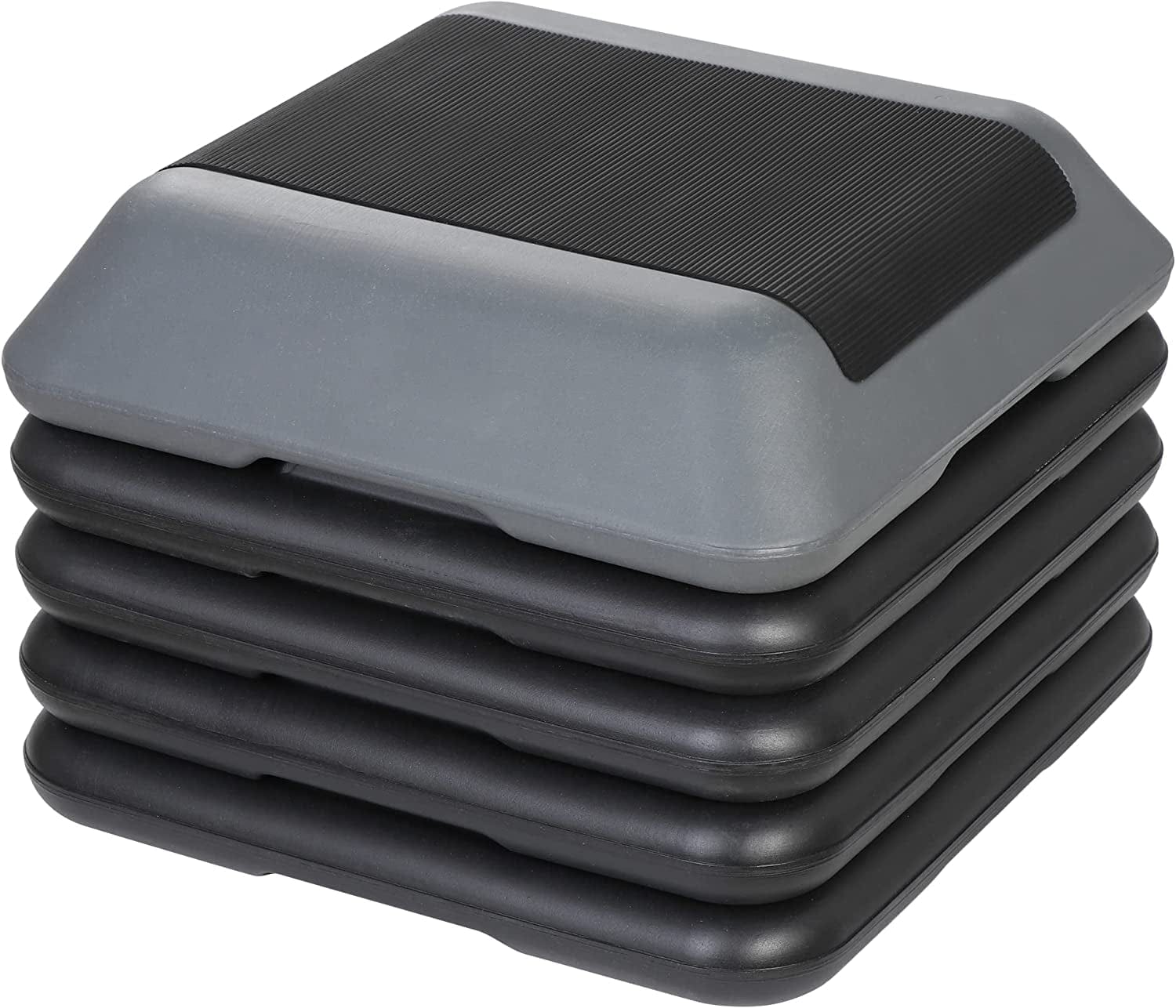 - 【4'' - 6'' - 8''-10''-12'', 5 Height Levels】- The tall exercise step platform consists of a non-slip platform (16” L x 16” W x 4” H) with 4 risers that can adjust the height from 4 to 12 inches depending on the intensity of the workout. The Step is a widely used aerobic fitness system, perfect for beginners and advanced athletes looking to work out at home.